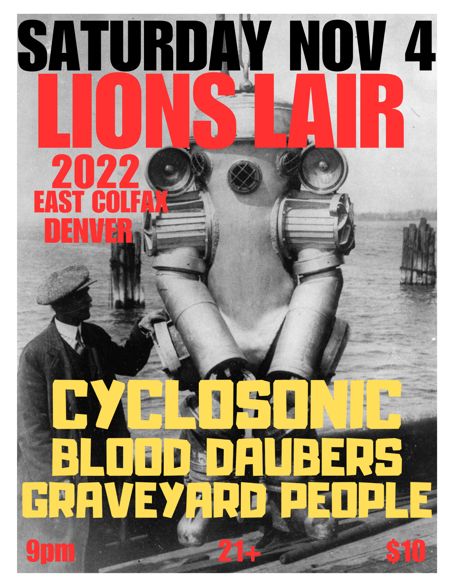 Since forming in Denver CO early in 2022, Graveyard People has played over 150 live shows across 13 states. They have self released four E.P.s, including ‘Eunice’ (2022), ‘Kill Pit’ (2023) and ‘She’s Gone’ (2023). They released their newest album, ‘The Cuckening’ on October 16th 2024. As of 2025, GP is writing material for a new album, tentatively titled “Wet Bones & Hair”